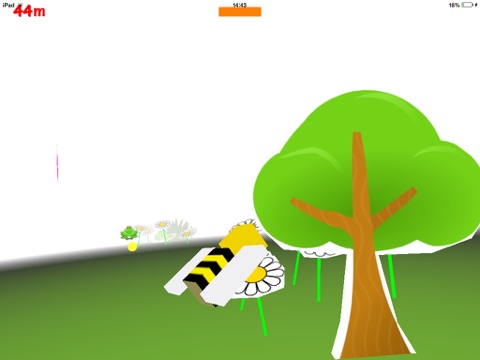 Fly a crazy Bee along a countryside full of obstacles, looking for pollen grains.