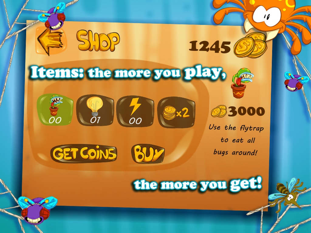 The Crazy Bitsy Spider is trying to protect his webby-home from the Bugs Attack.