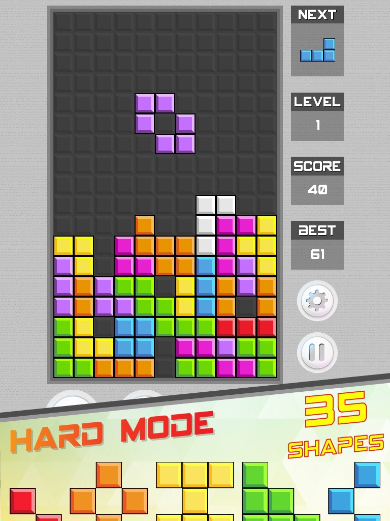 Like Tetris game that you played in your childhood but even more fun and challenge with 3 different modes with up to total 35 tetrominoes: