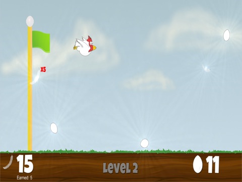 Collect feathers along the way to help Crazy Chook fly!