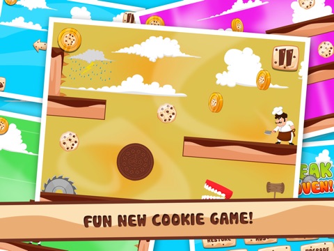Those crazy cookies!!!! They have escaped the oven!!!! Help them avoid the mad chef and other weird obstacles and get away before they get eaten!!!!