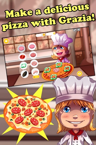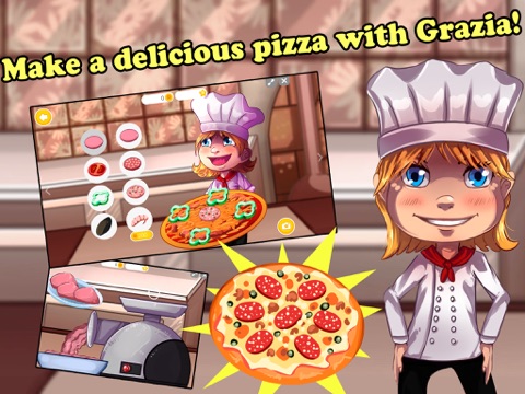 Grazia is an Italian chef waiting for you in her pizzeria. Prepare for the most exciting pizza baking game! Mix flour, egg and water to make pizza dough. Peel and cut fresh vegetables for pizza toppings and mince some beef. Top the pizza with beef and grated cheese, and slide it in the oven. When it’s done, decorate your pizza with the most popular pizza toppings!