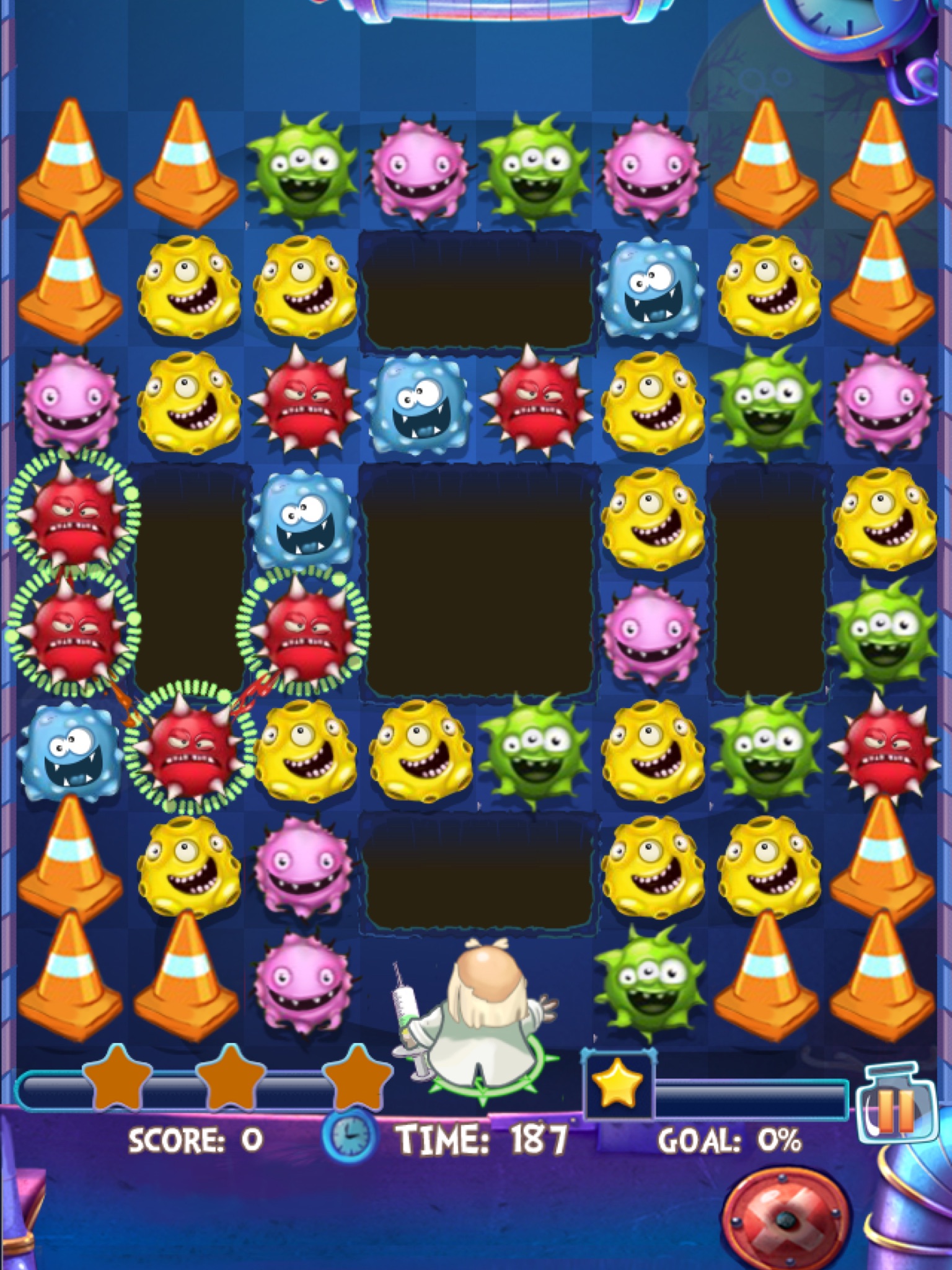 Crazy Doctor VS Weird Virus is a fun finger matching game, help crazy doctor to defends enhanced viruses and protect the laboratory.