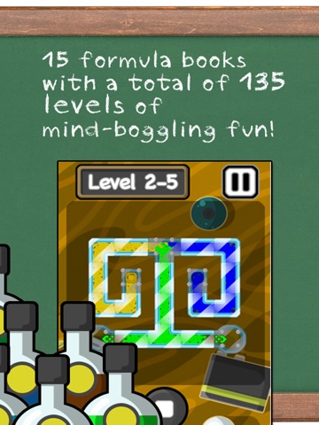 The science here is for you to crack a way to make the formula (fluid) pass through all the lab tubes, until it gets to its final destination, the formulas recipient. For that, you must align all the lab tubes in the correct position (so the fluid can flow to the right side of the screen). You can also mix two or more formulas (fluid), and transform its color or effect (delay etc.).