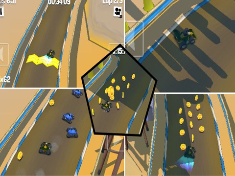 Race against opponents, earn prize money and buy new cars and tracks. Collect coins to earn bonus money and avoid oil stains, they will make your car spin!