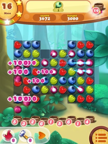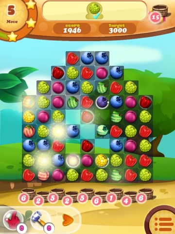 Combine 3 fruits in a line, you will get 3 fruits. Combine 4 fruits, you will receive 4 fruits bonus a fruit basket and 1 featuring fruit that can eat the whole vertical or horizontal row. Combine 5 fruits in a right angle, you can get 5 fruits and bonus two baskets and a fruit that can eat all 9 surrounding fruits. Combine 5 fruits in a line, you can get 5 fruits and bonus 5 baskets, and a god pitcher that can eat all the fruits swiping with it. Beautifully designed with 6 kinds of fruits: mangos, lime fruits, custard-apples, red peppers, plums, pears.
