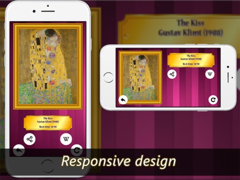 After completing each painting, you have additional options available to share in your social networks, visit the relevant page on Wikipedia, or play the same painting again to try to improve your personal record.