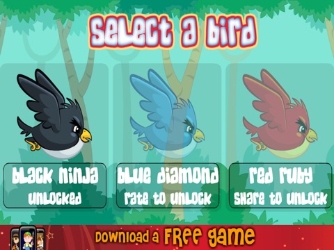 "Crazy Hungry Birds" is a very interesting & addictive arcade game. In this game, you will play the role of a bird. You can select any of the 3 birds. The bird gets hungry very quickly. You have to feed him. If its hungry, it cant fly and it will not reach the final destination. To control the bird, all you have to do is to tap anywhere on the screen to fly upward, and release your finger to fly downward. There are different types of obstacles here and there, you have to avoid colliding them as it will decrease your speed. Also there are different types of insects/snake etc in the jungle, they can harm/kill you. You have to be in a safe distance from them and reach your goal and find some food for your bird. Please let me know what you think about the game, so that we can improve it. Join us on facebook https://www.facebook.com/hungryBirdsGame
