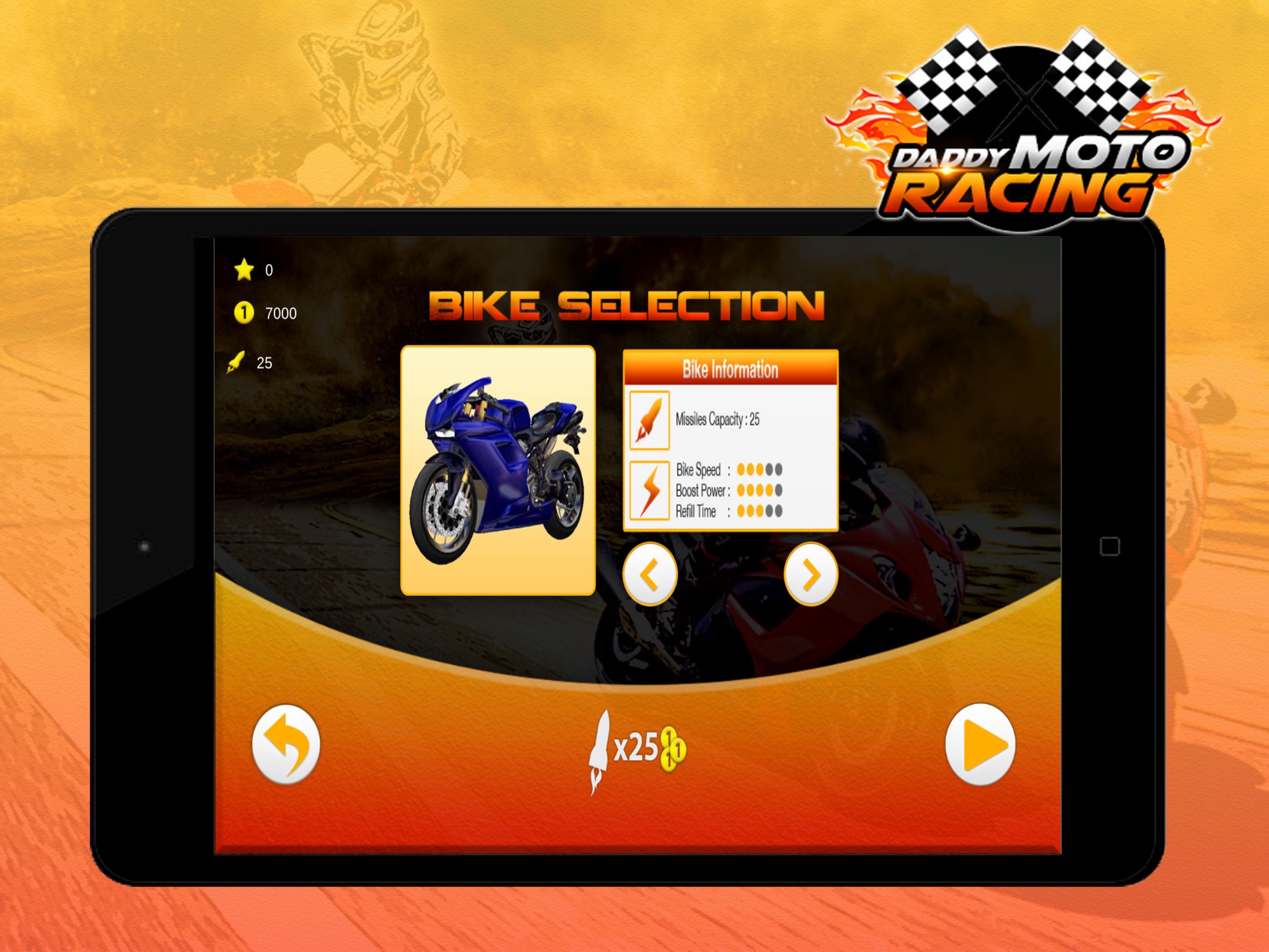Daddy Moto Racing - Use powerful missile to become a motorcycle racing winner at Mac App Store analyse