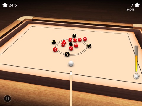 Here you have to get all the Red balls out of the board, but you have to keep the Black balls. If a single Black ball goes out or the Cue Ball goes out 2 times, the game will be over.