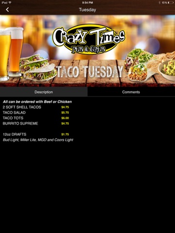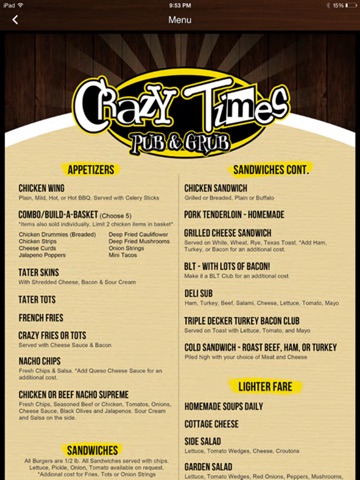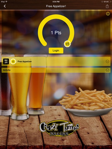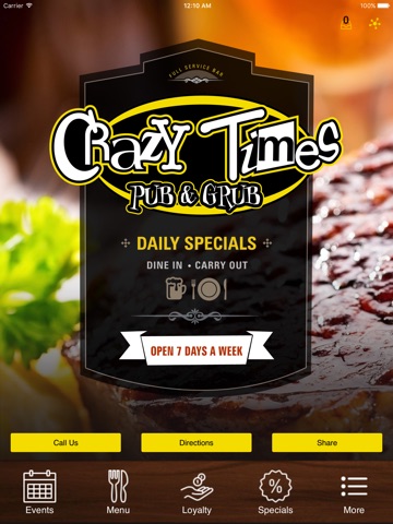 Welcome to the new Crazy Times Pub & Grub app. Were giving our patrons a new way to earn and redeem rewards. Never miss out on great food or a crazy good time ever again!