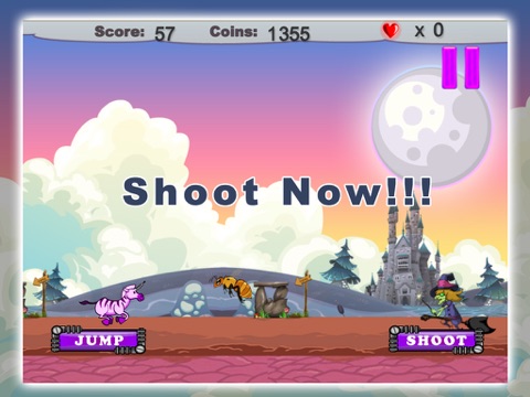 Join the magical unicorn in the amazing world of magic and witches. Press the jump button to fly over obstacles and get to the next platforms. Press the shoot button to make the witches and other dangerous things disappear.