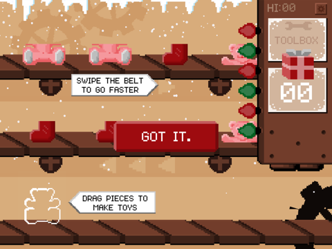 Christmas is coming and Santa is running behind at the workshop. Join him at the North Pole and help build all the toys. Work fast! If you fall behind, you’ll be fired!