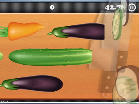 Vegetables are coming from left on the conveyor belt, slice them quickly and thinly! Addictive and simple!