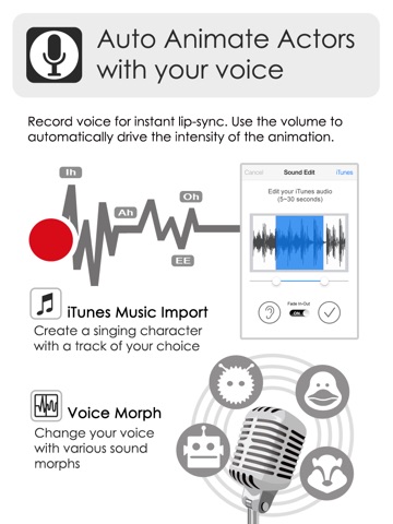 •Record your voice with instant lip-syncing, and use speech volume to automatically drive the intensity of the animation.