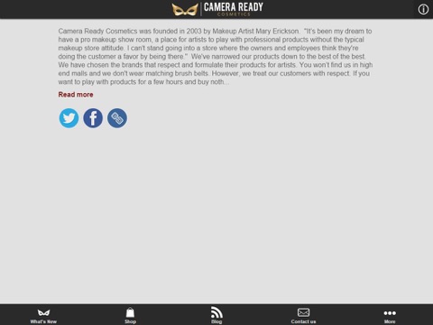 CRC Makeup is the official app for Camera Ready Cosmetics, your #1 source for makeup online at the lowest price guaranteed. Use our app to quickly find the makeup you need, discover our newest products, and connect with us on your favorite social networks.