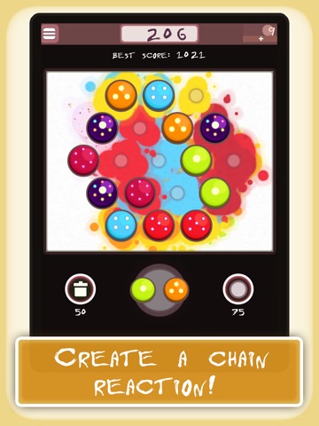 Placing three or more same colour pieces of paint next to each other starts a chain reaction. Make these chain reactions to upgrade your paint and earn more points!