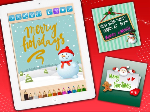 "To wish everyone the best Christmas holidays with original customized cards. Wish your beloved ones a merry Christmas with these customized Christmas greeting cards! Surprise your friends, your family or your partner with these beautiful cards. Download this app and discover the lovely pictures that we’ve selected in order to help you find the suitable card for the person you want to send your best wishes.