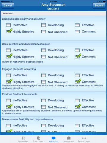 After designing the successful Classroom Walk-Through and Create Your Own Walk-Through apps, we found that school principals, superintendents, supervisors, teacher leaders, and all of those who observe, evaluate and collaborate with classroom teachers wanted even more. They wanted the ability to customize the entire walk-through from the ground up, including the ability to customize the checkbox labels.