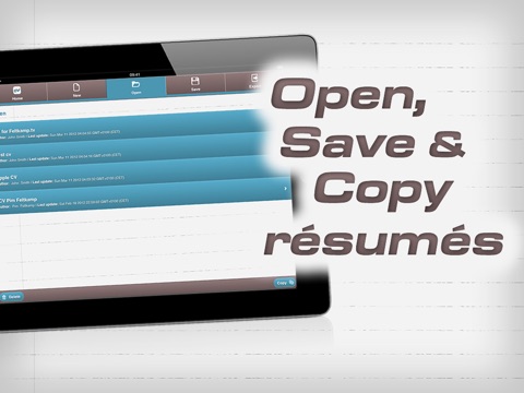 - Open, save, copy and delete résumés