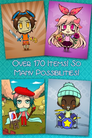 Create your own unique Avatar with CreateShake: Chibi Avatar. With tons of items to work with you can make a great icon to represent your interests and unique personality. Design your own cartoon mini or see what a shake brings you. Great to use for your profiles on social media or forums. Express yourself with a great chibi anime style character. Save your designs to your photo album, share with email or post to Facebook or Twitter.