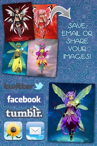 Explore the beautiful world of fairies with CreateShake: Fairy Spirit. Cute, elegant, elemental, ephemeral theres so many styles to choose from, what kind will you make? Customize your own design by selecting hair, clothing, wings, accessories and more, with lots of options to explore. Or try shaking to get a random design and discover a brand new fairy created just for you. Save your designs to your photo album, share with email or post to Facebook or Twitter.