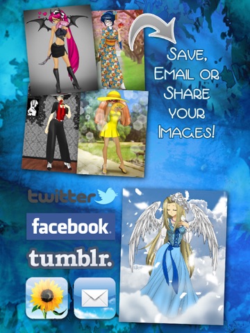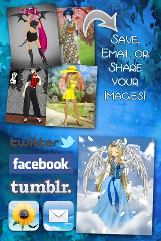 Shake to generate a random design or design it from scratch. Contains over 500 items! You can choose from casual style, traditional Japanese dress, Victorian and fantasy outfits! You can also mix and match for billions of possible designs! You dont need to be an artist to create anime characters for stories, games and just for the fun and creativity of it! What will your character wear? A bikini? A penguin T-shirt? A maid costume? A ninja suit? A sporty outfit? Its up to you, so be creative and show off your imagination!