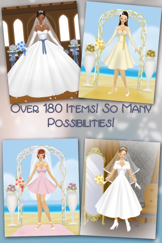 -Over 180 options to customize! Includes tiaras, veils, bouquets, gloves, necklaces, shoes and hairstyles. You can customize the shape of the dress by combining bodices, skirt styles, sleeve styles and accents!