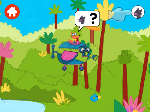 You have finished colouring in the machine? The application will capture it and use it in the game. You are now in charge of your machine and can set off to explore the Jungle! Please help Leo find the wild animals and small characters that love to hide there. There are a dozen of them to be found!
