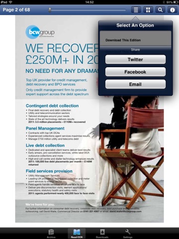 ♦ Social networking integration to keep your friends and social-circles up to date with all the latest shared news from Credit Collections & Risk Magazine