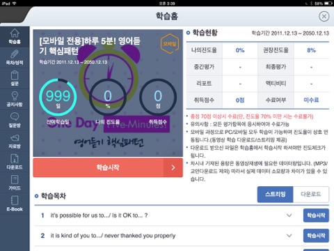 - 스마트러닝을 위한 모바일 전용 학습홈 제공