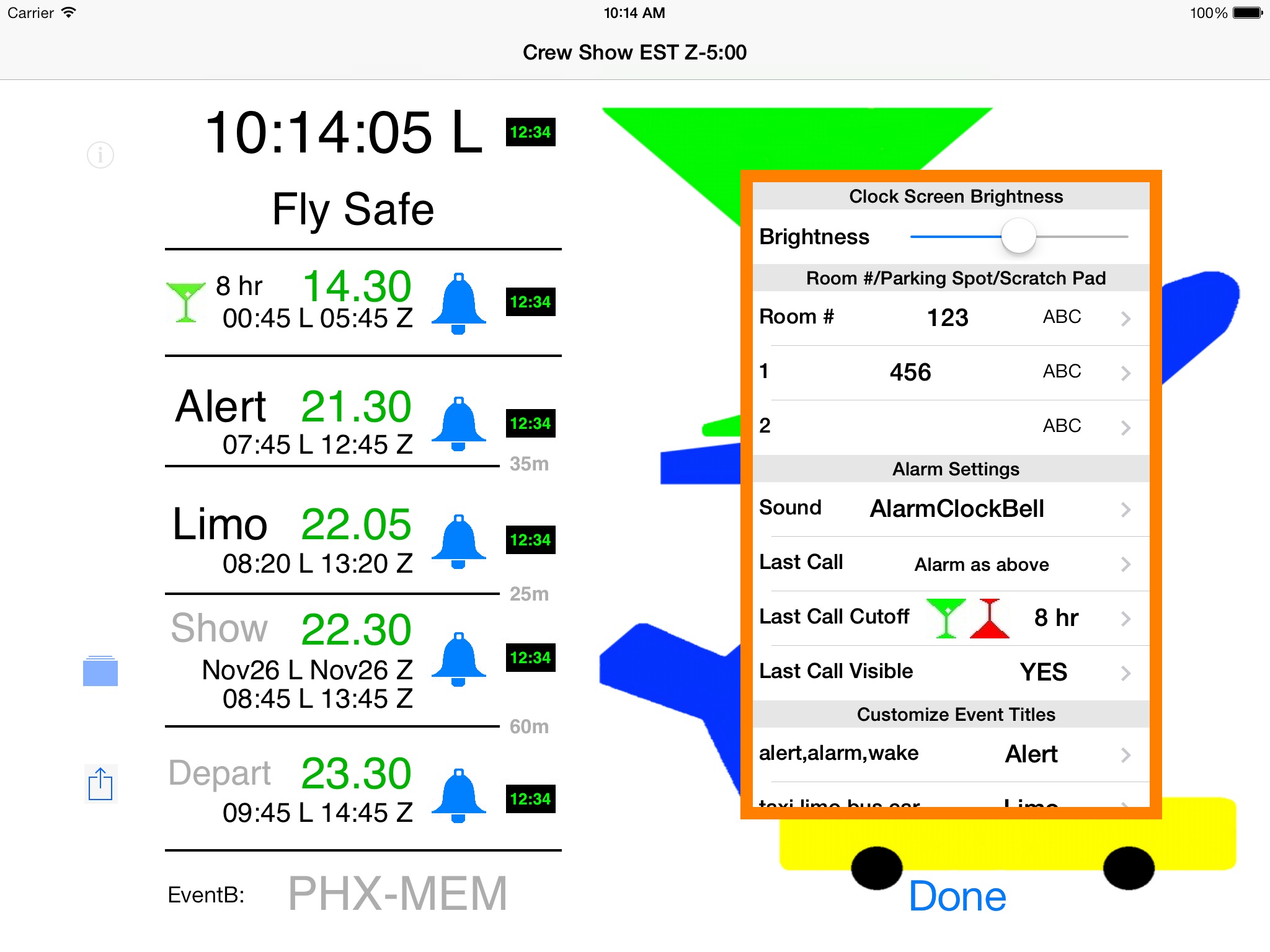 Requires iOS 7.0 or later. "Crew Show" does not need to be open for alarms to function.
