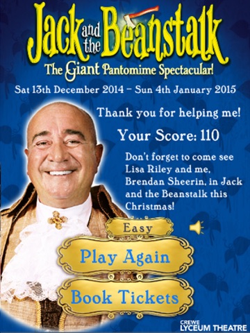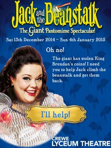Oh no! The evil Giant has stolen all of the King’s coins. Jack needs your help to climb up the beanstalk and catch the coins for The Fairy and King Brendan in this fun game for the whole family inspired by Cheshire’s giant pantomime, Jack and the Beanstalk!