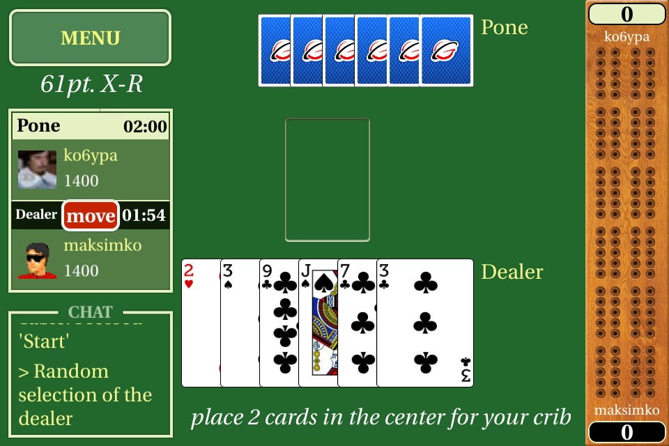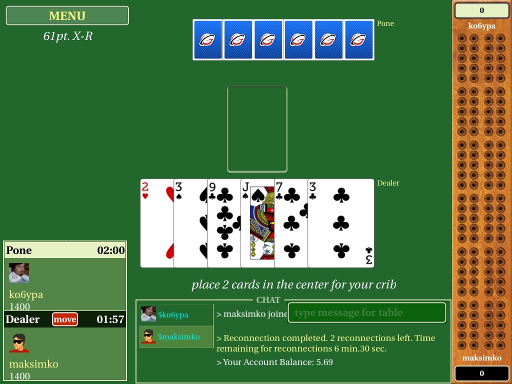 Play cribbage and chat online with real players - hundreds of players from all over the world at all hours!