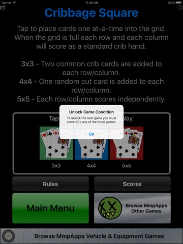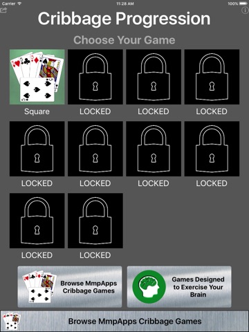 Starting with one unlocked game you must meet game play objectives to unlock nine other games. All games are based on cribbage and are free-to-play once you have unlocked them.