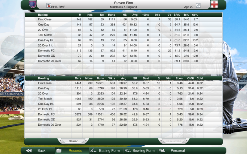 • New achievements: including career runs and wickets records for teams and on-line play.