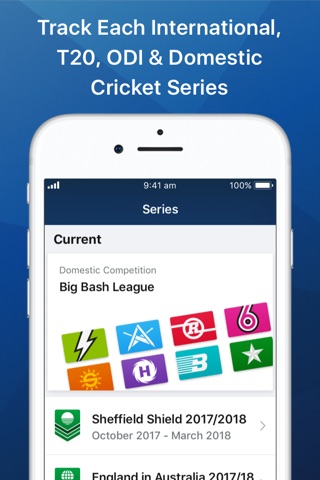 Follow the progress of your team throughout each Test and ODI series, T20 League or Domestic Competition.