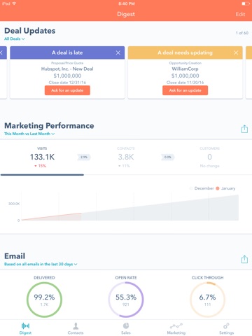 The HubSpot mobile app brings your Sales and Marketing teams together on the same AI-powered customer platform. Its easy to use, provides value fast, and gives all teams a unified view of the customer at every stage in their journey. Each product in the platform is powerful on its own, but the real magic happens when you use them together.