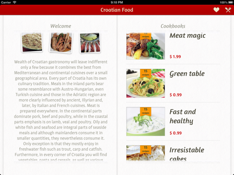 Croate dorigine, jai voulu faire decouvrir ma cuisine à ma Douce. Quel bonheur que de decouvrir une application avec des recettes que jai savouré dans ma plus tendre enfance. Une fois lapplication installée, je maperçois que les recettes sont payantes, alors que lapplication est gratuite. Conclusion. Il y a pas de petit racket.