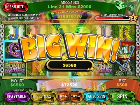With UNLIMITED FREE COINS and bonuses, try to win as many riches as possible by also playing features such as the Leprechauns Rainbow Wheel of Fortune bonus feature plus the Triple 7 and Lucky Money mini-games to accumulate virtual credit prize bonuses.