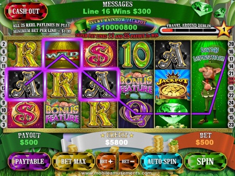 Including extra features such as FREE Magic Fairy Spell Spins, $10,000 Bonus Shamrock Clover, 2x Dublin Yer Cash charmed reel payout feature, Lucky Line, Super Lines, Multi-Free Spins and HUGE Cash Bonuses.