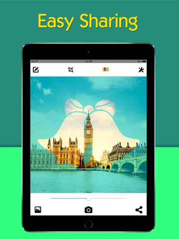 Crop Photos lets you crop your pictures into amazing shapes. You can also select color, transparency, add text, text size and much more!