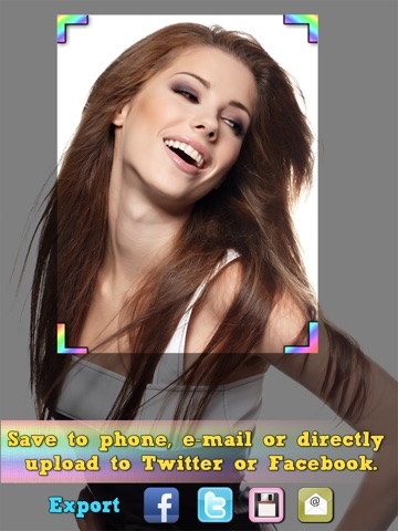 √ EXPORT cropped photo to facebook/twitter albums or Email or save to phone albums.
