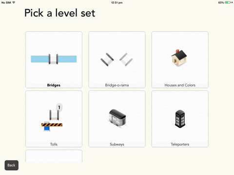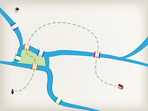 Each town challenges and entertains you with twists, turns, and a little man walking across bridges. The towns start simple and add more and more with houses to visit, colored bridges, tolls, and subways.
