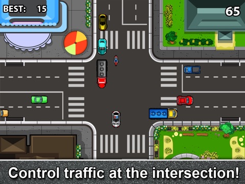 Its rush hour and you have to control the traffic through this busy intersection. Bikes, trucks and cars of all types are crossing through.