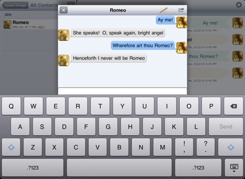 GoogleTalk, Facebook Chat, and XMPP IM (Jabber) client for iOS devices. Designed for the iPad, but equally useful on iPhone and compatible with iOS 4.