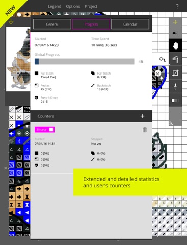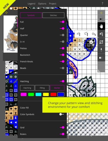 Прекрасная программа, спасибо разработчикам! Было бы здорово, если бы можно было закрашивать вышитые клеточки оптом и еще менять масштаб отображения палитры в меню, чтобы больше символов одновременно видеть. Ну и другие форматы чтобы понимала. Но это так, лирика формата "нет предела совершенству", а вообще все очень толково, понятно и просто сделано. Отдельное спасибо за лаконичный дизайн.