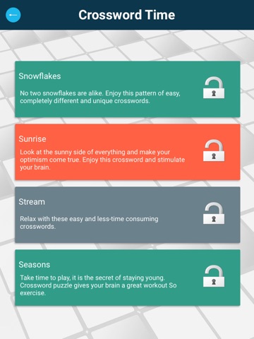 This is a free version. So try our free puzzles and you will be interested to buy the In app puzzles. Each In app puzzles is of different category consisting of 25 crossword puzzles.