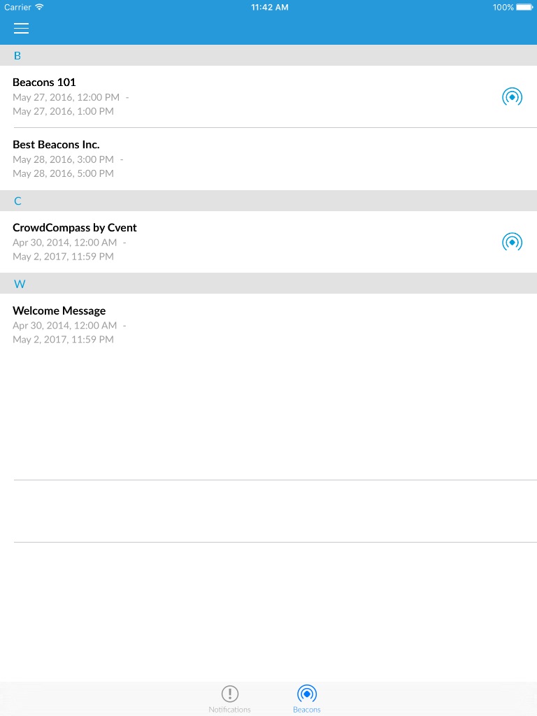The CrowdPlanner app assigns alerts created in the CrowdCompass EventCenter to beacons that will be used onsite at your event. With alerts assigned, attendees will be notified with the information they need exactly when and where they need it.