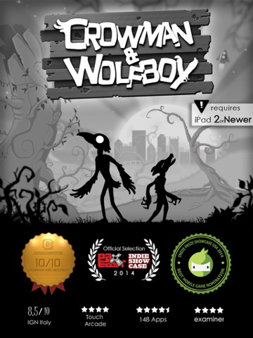 Crowman & Wolfboy are an unlikely pair of shadow creatures on a bizarre journey to escape their own nature and find the mysterious "humans". Help them flee the planet of shadows and the life-devouring Darkness following their every step. Will the path to “humans” lead Crowman & Wolfboy to happiness? Will they ever escape the persistent Darkness? Could a real life crow lift a real life wolf over pits of mutant garbage cans? ...What?!